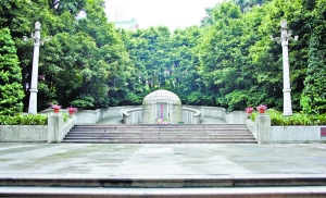 学校内藏有墓地,这在中学中十分罕见,被评为广州市第五批文物保护单位的执信中学就是其中之一。穿过古宫殿式的三孔穹门,走过上世纪20年代末期建起的南北两座红楼,步过荷塘环绕的执信桥,绕过大路和小道,记者随执信中学党委书记张水平来到朱执信墓前。