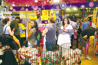 西裔诺加勒斯一家祖孙三代到湖人队用品店选购各自中意的服装、鞋帽。他表示,一直是湖人队忠实球迷,经常购买湖人队纪念品,所有纪念品加起来可办一个收藏展。