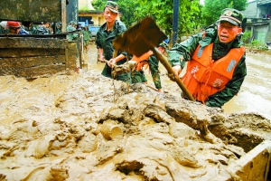 到处是水,分不清哪里是路、哪里是沟。靠近冲锋舟的途中,周建民突然脚底一滑,跌入水沟,一眨眼功夫,他的头没入水中,眼看就要被激流吸进涵洞,冲向下游。