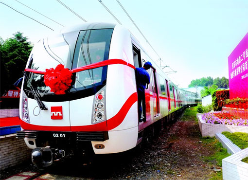 日前,西安地铁二号线首列车在长春下线。该车设计最高运行时速80公里,每列车定员1468人,坐席240人。首列车7月中旬将通过铁路运抵西安。