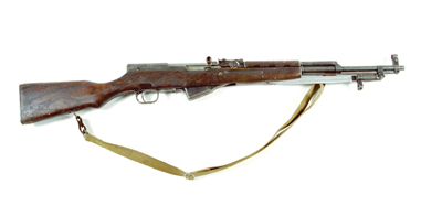 中国制造,仿苏联CKC式半自动卡宾枪,1956年定型投产。口径7.62毫米,枪长1025毫米,质量3.75千克, 初速735米/秒,战斗射速35-40发/分,有效射程400米,10发固定弹仓供弹。