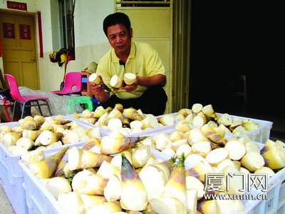 本报讯(文/图 记者 李晓辉 通讯员 王向阳)雨过天晴,集美区黄地村坂头林场山母后的绿竹笋到了丰收季节。与普通竹笋不同,这些绿竹笋可以生吃,或者加油盐翻炒,也香甜可口。每年6月到8月,是绿竹笋的高产期。