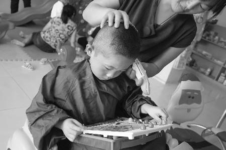 ▲林林被玩具所吸引,安静地理发。