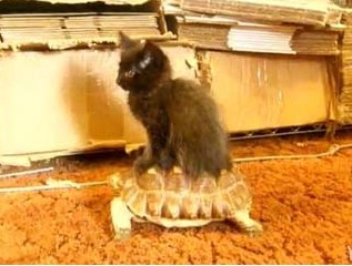 小猫骑乌龟客厅兜风 "遛龟潮"走红鹦鹉跟风(图)