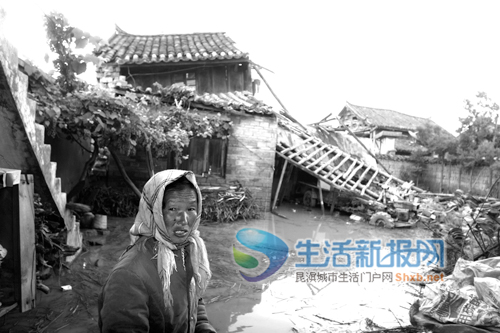 昨日15时许,当记者来到马龙县老城区北门街时看到,此时,虽然洪水已经消退,这条街上已经没有洪水浸泡,但由于这条街上存留着许多土木结构的老房子,经不起暴雨的袭击,大部分房屋倒塌,只有新建的部分砖瓦房抵御了水灾没倒。