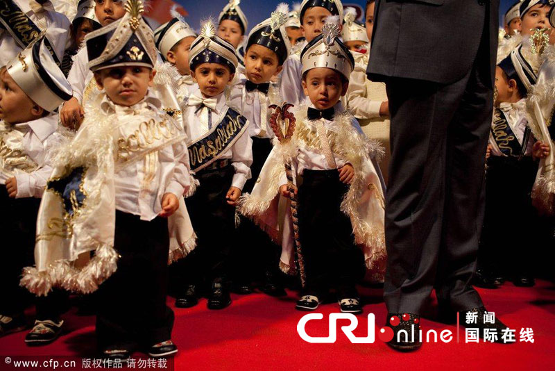 伊斯坦布尔为五百多名男孩举行割礼仪式(高清组图) 国际在线 国际在线官方账号 2010.06.2711:54 关注 2010年6月26日,土耳其伊斯坦布尔为五百多名男孩举行割礼仪式。按照土耳其的习俗,出席仪式的孩子穿着白色礼服,头戴王冠,手里拿着宝杖,就像国王一样。