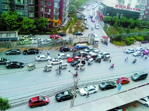 而在采访中,记者了解到,梵谷水郡小区周围的其他小区内外,道路上肆意停车的状况时有发生,更何况还有盘踞在小区门口的黑车、摩的。占道停车除了遮挡了视线外,还让道路变窄,骑车的人只能进入机动车道,机动车主则小心翼翼地驾驶。J207 (赵女士供图)