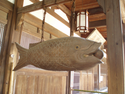 大雄宝殿内,释迦佛像下,有一个硕大的木鱼,一般人都知道,此乃僧人诵经时所用。可是与大雄宝殿的称谓一样,寺院中我们所熟识的木鱼的出现,也是比较晚近的事。不过与此相关的记载,倒是很早就有。 “木鱼”一词,最早大概见于1019年问世的《释氏要览》中。元代重修的《百丈清规》中说:“鱼昼夜醒,刻木,象形,击之,以警昏惰。”可是宋元时期的木鱼,只是鱼形的木具,主要用于寺院中入堂、斋粥等时集聚僧众的场合,并非今日所见的用于诵经的圆形木鱼,后者大约出现在明代。此后便将用于集合的木鱼称为“鱼梆”或者“鱼板”。1981年日本平凡社出版的《世界大百科事典》中说:“在承应年间(1652-1655),黄檗禅来到日本时,传来了木鱼,以后广泛用于禅、天台、净土等各宗之间。”原来诵经用的圆圆的木鱼是隐元等黄檗僧人传到日本来的!换言之,日本在17世纪中叶之前是没有木鱼的。而今日的中国差不多已经消失的“鱼梆”或“鱼板”,万福寺内倒是依然留存着,不仅留存着,且依然在使用,只是当年的原物已经十分珍贵,有些鱼板已经敲得字迹模糊,今天日常所用的,大都是新近制作的。万福寺鱼板上所刻写的文字,颇为有趣,抄录如下: