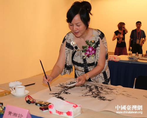 黄湘詅老师在笔会活动现场作画。她说画画是一件很开心的事。(中国台湾网 李典典摄)