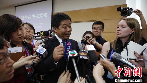 6月30日,三十多家中外媒体的六十余名记者应中共中央党校和中共中央对外宣传办公室联合邀请到中共中央党校参观采访。参观采访过程中,中央党校副校长陈宝生向记者介绍党校情况,并回答记者提问。记者们观摩了党校学员课程,参观了报告厅、体育馆、学员宿舍、食堂、礼堂、“实事求是”碑等地。中新社发 盛佳鹏 摄