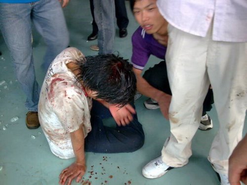 事故现场的伤者浑身是血 南方日报记者 丁玎 邓生