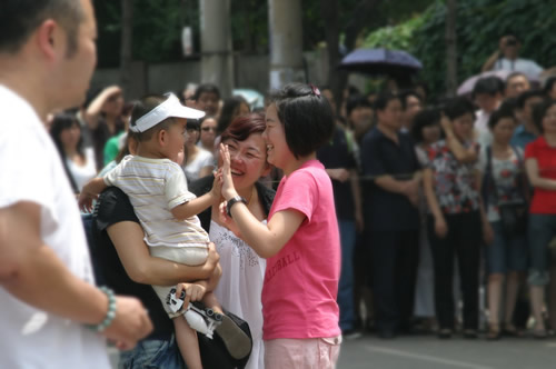 记者直击沈阳中考 26个月大男孩为姐姐助威(图)
