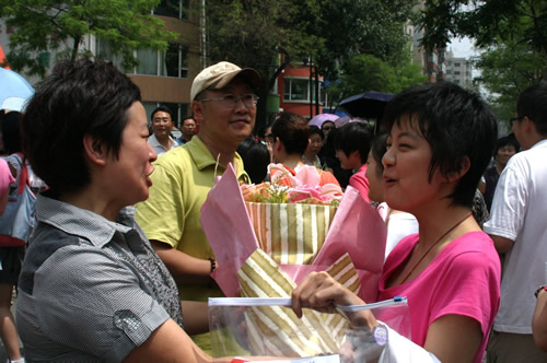 不过也有家长对送花表示了不同的看法。考生家长蒋女士说,如果孩子考得不是很理想,送束花反而会使孩子心理负担过大,还是平平淡淡,用平常心面对比较好。