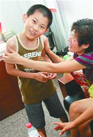 苏刘溢,10岁,人称泰安小“神童”。小学课程在父母指导下完成。2007年,7岁的苏刘溢在泰山博文中学读初中,一年内读完初中课程。2008年9月,8岁的苏刘溢进入泰安二中高一试读,但不到一年退学在家自学,对电脑比较精通。今年6月,10岁的苏刘溢首次参加高考,总分566分。其中,数学130分,英语118分。