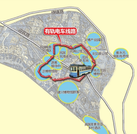 据了解,有轨电车的车速最高不超过20公里/每小时。据此测算,加上各个站点停留、上下游客时间,一期单程线路用时约需20分钟,每天可运载游客约2000余人。该负责人讲,轨道铺设及配套工程建设将由中铁二局负责施工,而车辆则在沈阳量身定制。