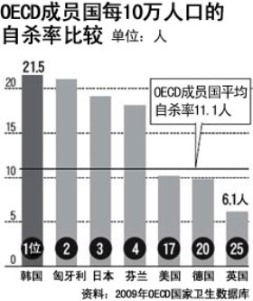 首先要指出的一个事实是,艺人也是韩国人。韩国的自杀率居世界首位。韩国每10万人口中有21.5人自杀,在经合组织成员国中居首位。而经合组织成员国的平均自杀率为11.1人。