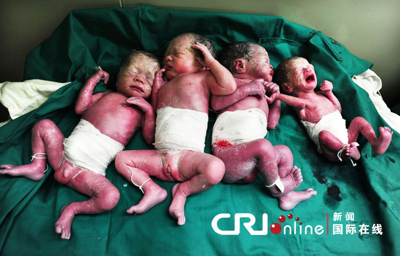 长沙27岁女子10分钟诞下双龙双凤四胞胎(高清组图)