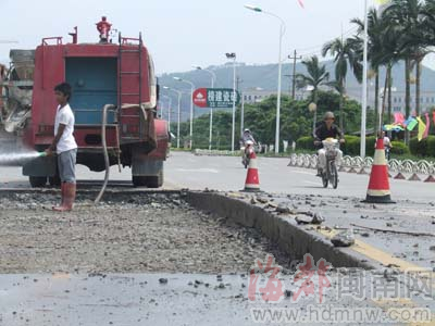 40℃高温烤爆水泥路面 海峡都市报 海峡都市报官方账号 2010.07.0702:10 关注 N本报记者 萧镇平 廖明生 文/图 有些路面拱起三十多厘米,网友浪雪拍摄,线索费50元 施工人员把破裂路面挖空,准备重新浇注混凝土