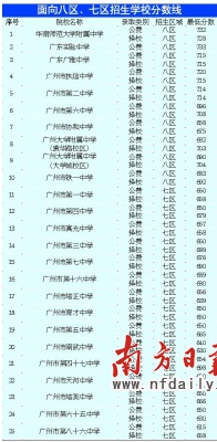 今年“倒挂”最厉害的是广州市第四十七中学,该校公费线为654分,择校线则达到了698分。而八十六中、六中、广铁一中、广大附中、七中、四中、三中、天河中学等多间重点高中的择校线都高过公费线,广雅中学、二中的公费、择校都出现了罕有的“同分”。