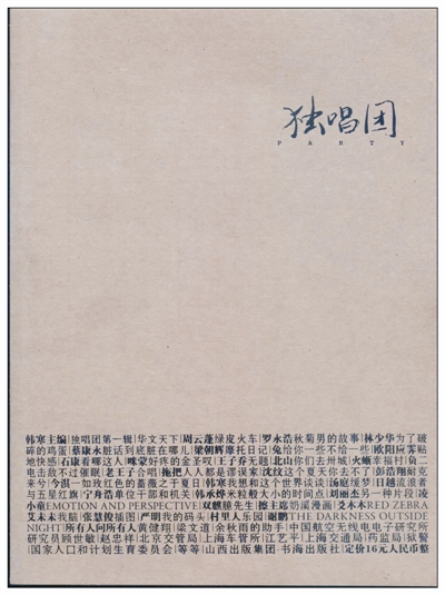 本报讯(记者胡孙华 实习生陈琼)80后作家韩寒“酝酿”主编一年之久的杂志《独唱团》近日终于上市。此次,这位偶像作家显示了非凡的文化影响力,在80后作家群斥之“粗制滥造”并呼吁抵制的同时,《独唱团》遭到疯抢,当天全国销售即达10万册。
