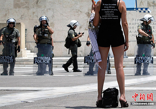 当地时间7月8日,希腊爆发了新一轮大罢工,抗议政府提前退休年龄,克扣养老金等严厉削减公共开支的措施。警方估计,仅在首都雅典,就有1.2万人走上街头游行示威。据悉,这场为期24小时的罢工当天导致希腊全国交通几乎瘫痪,火车停运、航班被迫延误、旅游渡轮停止航行,前往希腊旅游的游客要到9日才能搭乘渡轮。政府公共机构、学校、医院、国营企业的正常运营遭到沉重打击。