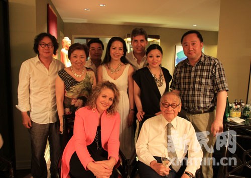 门铃响了。进来的是93岁的著名华裔建筑设计师贝聿铭。他柱着拐杖,但精神矍铄。贝老也许不能去中央公园看现场演出,但他仍坚持来参加这个聚会,“看到这么多中国搞艺术的人能聚在这里,感觉很好”。