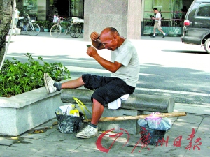 前天向本报求助的钟伯小女儿钟素华在单位接到电话,因分身不暇,只能通知休息在家的丈夫杨先生火速前往。杨先生表示,乘出租车到达棠下村达善大街时,发现一位穿短袖T恤、运动长裤的老人坐在祠堂外的门槛上,脚下一副担挑,身旁围着一村民。