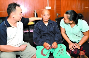 7月12日,本报拍客张法林拍下了沿江路一名老者自剪头发的瞬间。看到照片后,读者钟女士火速联系本报,称画面中的老人竟是她失散8年的老父亲。昨日,钟女士的呼声通过本报传至广州各大街小巷,40多名市民陆续来电提供线索。终于,59岁的钟伯在棠下被热心市民拦下,跟亲人相认。