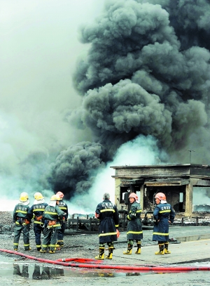大连新港输油管爆炸狂烧15小时