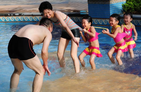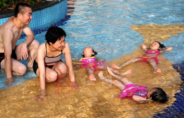 三胞胎女孩和父母在游泳池戏水(图) 红网 红网官方账号 2010.07.1914:59 关注 7月17日下午,杨先生焦女士夫妇带着自己三个5岁的三胞胎女儿,在新搬的小区的游泳池避暑降温,一家人其乐融融!(图/谢卓勋)稿源:红网 作者:谢卓勋