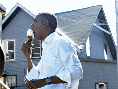 16日下午,奥巴马同夫人米歇尔、12岁的大女儿玛利亚以及9岁的小女儿萨沙抵达沙漠山岛的巴尔港,他们先骑了大约90分钟的自行车,然后在导游的带领下在凯迪拉克山上徒步游览,游客则被拦在山下的停车场。下山后,心情大好的奥巴马与游客打招呼,让许多游客惊讶不已。之后奥巴马带着孩子一起去岛上的巴尔港吃当地特色的沙漠山冰淇淋。晚上,“第一家庭”乘船来到一个名叫“哈瓦那”的拉美风味餐厅,奥巴马夫妇点了缅因州的特产龙虾。