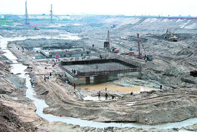 这是湘江长沙综合枢纽工程施工现场。湘江长沙综合枢纽工程是一座以改善湘江通航为主,并兼有保障供水、灌溉、改善环境和公路交通、发电等多重功能的综合枢纽工程。项目建成后,湘江城陵矶经长沙至衡阳段通航能力将由1000吨级提升到2000吨级,有利于保障供水,改善湘江风光带滨江环境,开发旅游资源,提升城市品位,增强长株潭三市经济整体竞争力,加快长株潭城市群“两型社会”建设步伐,是一个重要的经济工程、环境提质工程和民生工程。 邱晓峰 摄