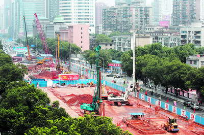地铁2号线五一大道迎宾路口站围护结构施工正在紧张进行中,预计月底将开始基坑开挖。轨道交通建设寄托着长沙人民的夙愿与梦想,承载着长沙发展的希望与未来。目前,地铁2号线18个车站已进入施工阶段,建设者们正全力施工,力争2号线一期工程2013年10月全线建成通车试运行,预计比国家批准工期提前一年。余志雄 摄