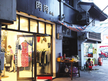 陈小姐是朔门街的常客,以往每个月都会花大把时间“泡”在这条街上,现在她也很少来了。“以前经常来这里,是因为这里有很多特色店,而且很多店主都是从事和设计有关的职业。每次逛,感觉就像去看一位老朋友一样亲切自然。现在很少逛了,因为服装店越来越多,特色越来越少。感觉那些店主不像过去那样为兴趣而开。”说起这些,陈小姐一脸的无奈。她觉得朔门街那种“偷得浮生半日闲”的感觉没了。