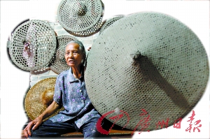 本报讯 (记者李传智 通讯员梁秀玲、陈飞舞摄影报道)在南海西樵有个古村百西大地村小组,一位名叫黎定枝的85岁老人保存着一顶直径一米多、有着百年历史的尖髻帽。当年,她的父亲为了给全家人挡雨遮阳,织出了这顶特大竹织尖髻帽。近日,西樵镇文化部门在进行“非遗”普查时发现,这种竹织雨帽传统手工技艺已在百西大地村小组代代相传了200多年。为了使这种民间工艺得到保护,已准备为其申报南海区非物质文化遗产。