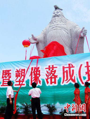 中新网淮安7月28日电(汤苗苗 浦荣曹 李广忠)今天上午,第十届中国金湖荷花•美食节在江苏省金湖县隆重开幕,作为开幕式重头戏之一的尧帝公园正式对公众开放,其主体部分尧帝塑像也于当天落成揭幕。
