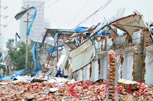 昨天下午4时左右,记者赶到了事故现场,眼前一片残垣断壁的景象,塑料四厂周围的房子很多都在爆炸中震塌。在经五路上,距离爆炸点1000多米的临街商户的窗户玻璃也被震碎。