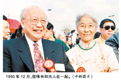 | 1993年,钱伟长和夫人在一起。 |