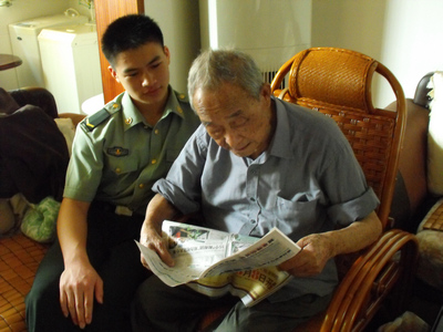 如今休息在家的陈老也不忘关心时事,据介绍,看《长沙晚报》和《新闻联播》成为了老人的必修功课,因为近年视力下降,老人看报纸主要看标题,有兴趣的新闻就会让公务员大声朗读。