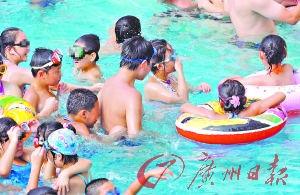 昨天下午接近6时,记者来到广州市少年宫内。当时正好是下午场清场和夜场入场的时间,在场有近百名家长和孩子,救生员站在泳池门口逐一检查入场券或次卡。记者发现,来游泳的成年人清一色是陪同孩子来的家长。接受记者采访的家长都认为,带孩子到少年宫的游泳池比一般的社会游泳池更让人放心。记者了解到,市少年宫游泳池对社会开放,大人也可以单独入场游。