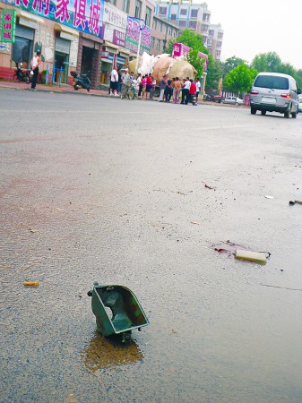 肇事出租车散落在地上的零件。本报记者姬生辉摄
