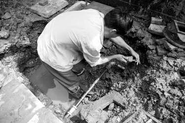 接到报修电话5分钟后,自来水市北公司沪东管理所的抢修队,迅速赶到现场。所长陈士忠介绍,小区目前正在施工,我们到达现场后立即抢修处置:“首先,抢修队将已填埋的路面进行开挖,找到‘漏点’后,立即关闭接水阀门。”