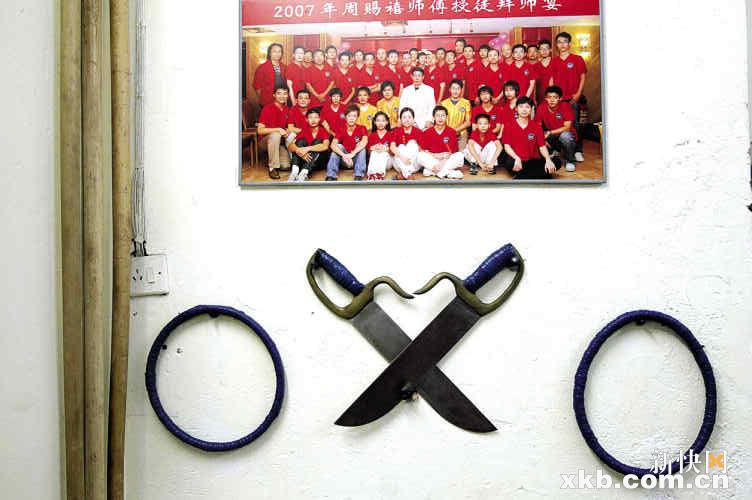 周师傅是江南西一家咏春拳武馆的教练,最近这里每天都有很多学员前来参观学习咏春拳,“暑假刚开始就增加了不少来学习咏春拳的人,他们大部分都是学生,也有各行各业的社会人士,年纪从几岁的到五六十的都有。”周师傅说。从1998年开始,周师傅就开设了这家咏春拳武馆,但那时候知道这门功夫的人很少,学的人就更少了。随着越来越多的人通过电视电影开始了解咏春拳以后,来学的人也慢慢地多了起来。“现在每天来这里学习的平均有30多人,以至于30多平方米的武馆现在被挤得满满的,有时候不得不到门口的院子里练习。”周师傅笑着说。今年15岁的阿韵是武馆里的一名“巾帼英雄”,2007年就开始学习咏春拳了。“那时候电视里正在热播谢霆锋主演的电视剧《咏春》,感觉特别酷,于是开始在网上搜索关于咏春拳的介绍,慢慢地就喜欢上了这门功夫。”