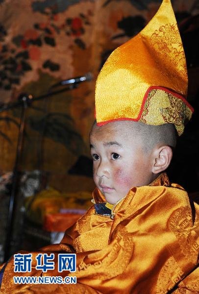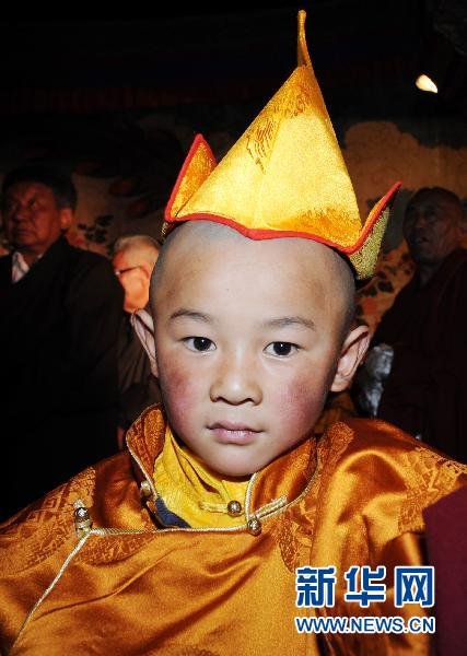 资料图:7月4日清晨,按照国家宗教事务局颁布的《藏传佛教活佛转世管理办法》,依照历史定制、宗教仪轨,第五世德珠活佛转世灵童金瓶掣签仪式在拉萨大昭寺举行。 2005年11月30日出生的候选灵童洛桑多吉中签,待报西藏自治区人民政府批准后,将继任为第六世德珠活佛。 新华社记者 觉果摄