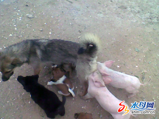 3日上午,家住海阳市辛安镇大山村的相先生打来热线称,他家的两头小猪竟然成了母狗的孩子,每天和小狗一起玩耍、一起吃奶、一起睡觉。