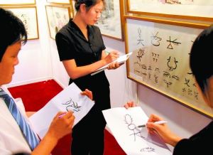 张庆之告诉记者,在《民族团结书画长卷》收集的书画作品中,有不少书法家创作了少数民族文字的书法作品,这些文字在一般人眼中本就如同天书,再加上书法艺术的变形,可难坏了长卷创作的组织者。最后只能把这样的作品拿到中国古文字研究会,请学者专家去“破译”。