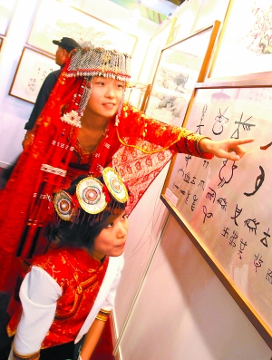 这些民族古文字的艺术特色与汉字书法颇有相通之处,有的排列整齐,古朴苍劲;有的生动流畅,潇洒豪放;有的繁复端庄,落落大方。只是,多数的少数民族古代文字书法作品如果不加注释,根本无从辨认。但对一些少数民族古代象形文字来说,比对着注释再去看原文,倒也别有趣味。