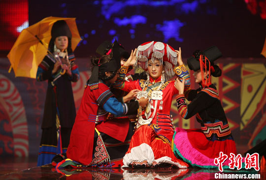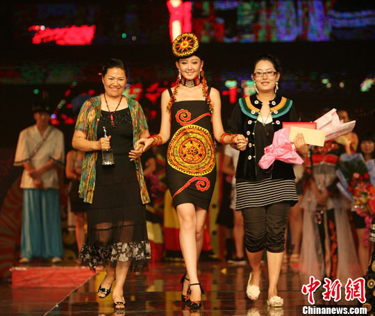 参赛设计师中年龄最小仅有22岁,最后来自四川凉山的巴莫金乐、金阿果获一等奖。图为四川凉山的两位服装设计师巴莫金乐、金阿果共获一等奖。 1