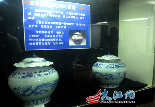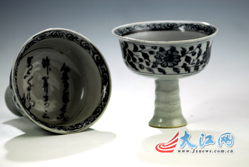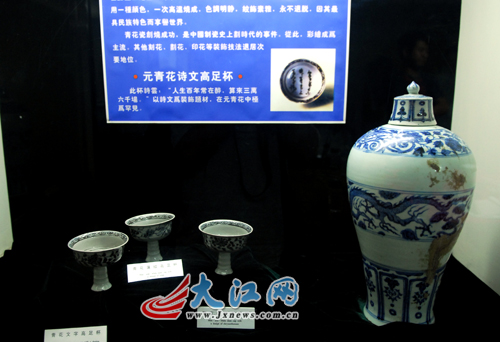央视《走遍中国》栏目组正在拍摄元青花瓷特写央视《走遍中国》栏目组正在拍摄贾家古村元青花云龙纹荷叶盖罐元青花云龙纹兽耳盖罐与元青花高足杯釉里红高足杯与釉里红瓷罐元青花字纹高足杯与菊纹高足杯元青花字纹高足杯元青花莲纹高足杯内部图案元青花菊纹高足杯