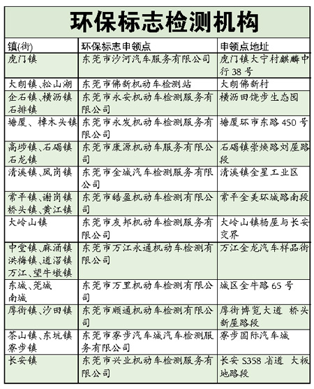 2.今年3月31日之前未到定期检验的国Ⅰ标准(柴油车)和国Ⅰ标准以下高排放汽车;今年3月31日之后领取环保检验合格标志的在用汽车以及在东莞初次注册登记的汽车,可凭有效的排气检测报告(新购置登记车辆凭整车出厂合格证明或者进口机动车进口凭证)、机动车行驶证和机动车登记证书到检测机构领取。